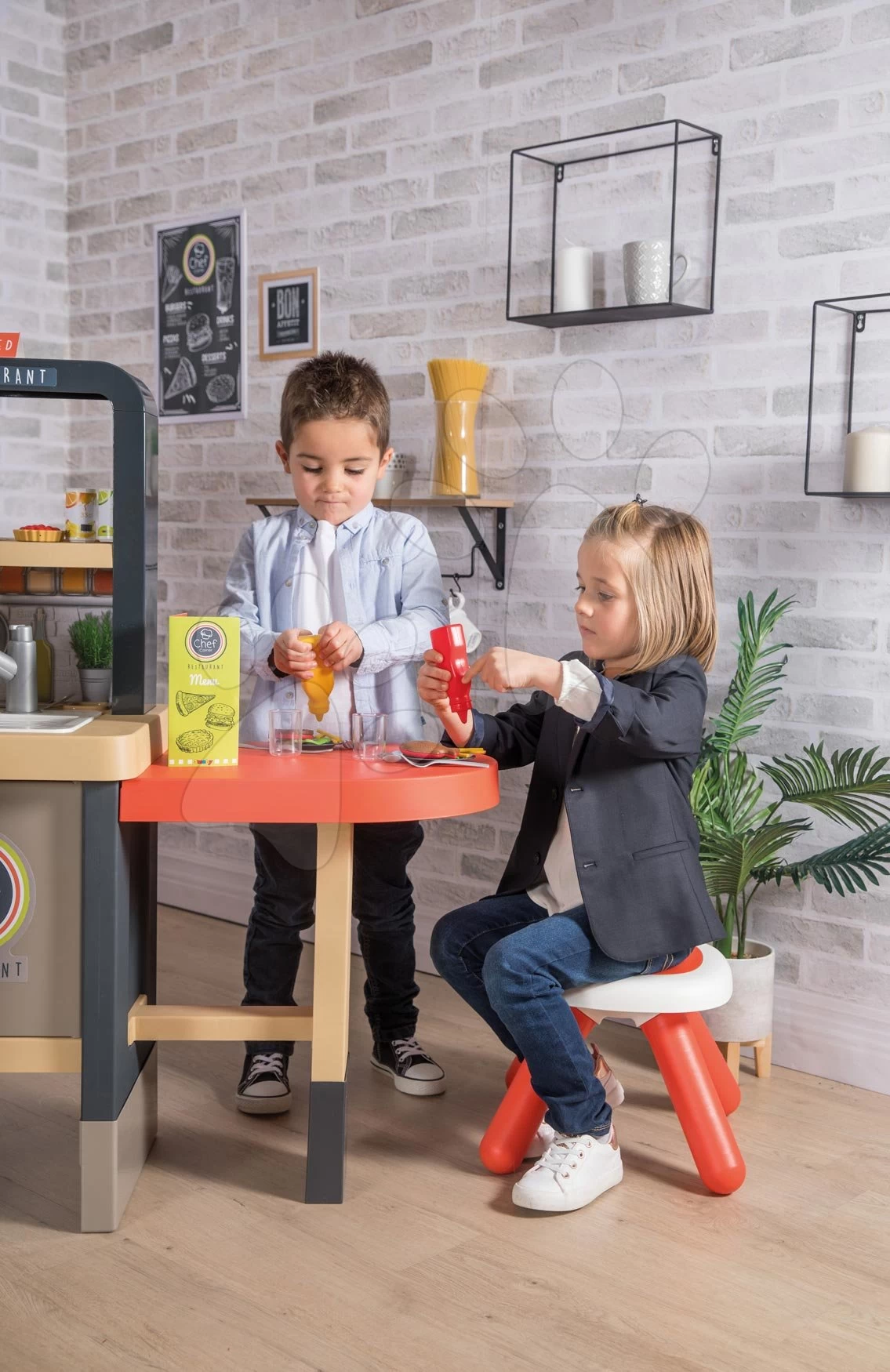 Set Restaurant Mit Elektronischer Küche Chef Corner Restaurant Smoby Und Puppenwagen-Dreierkombination Mit Esszimmerstuhl 3in1 Maxi Cosi&Quinny